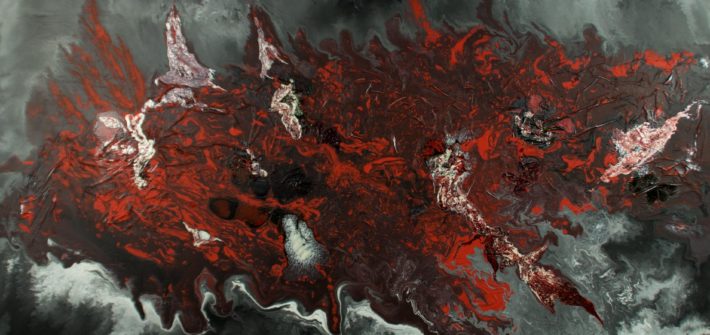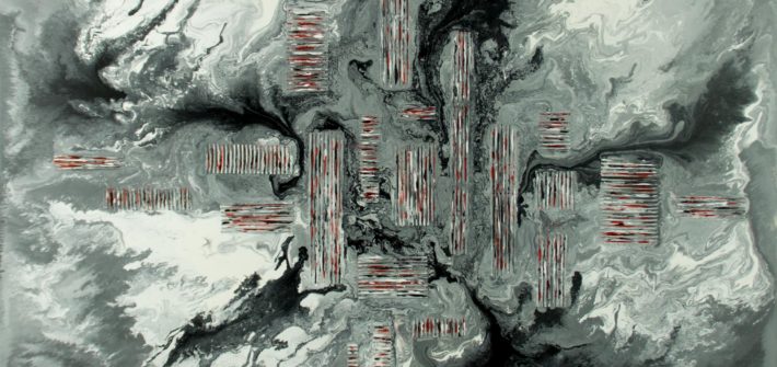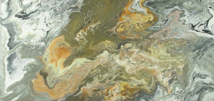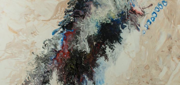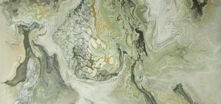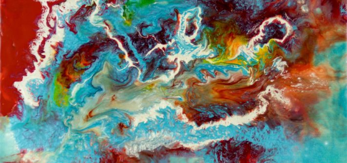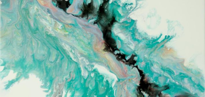 Peinture abstraite originale sur toile ; acrylique fluide avec effets métalliques.