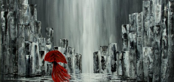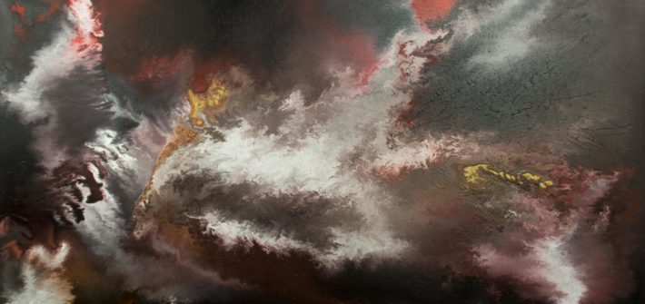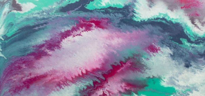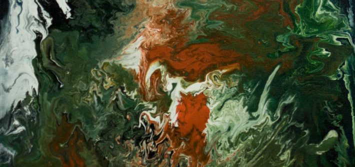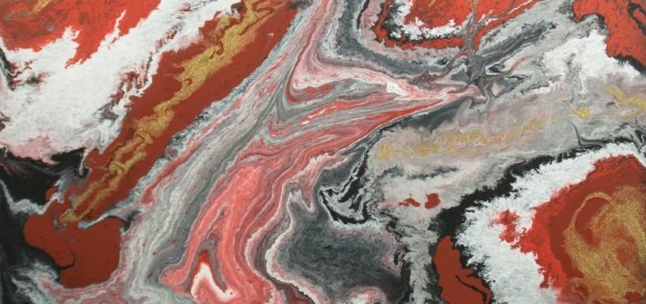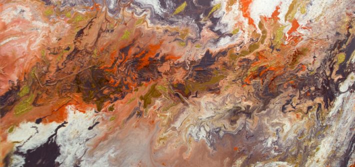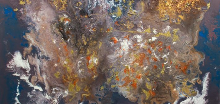Peinture abstraite originale sur toile ; acrylique fluide avec effets structurés et dorés.