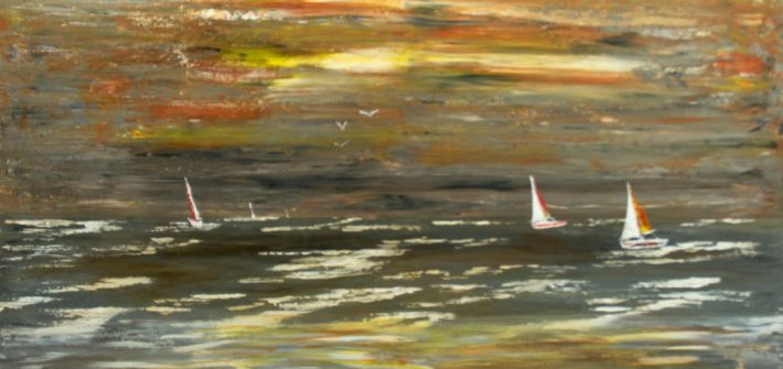 Peinture marine originale sur toile ; acrylique appliquée au pinceau et au couteau.