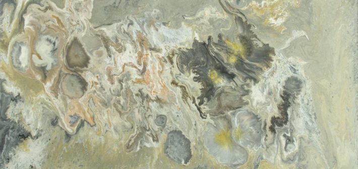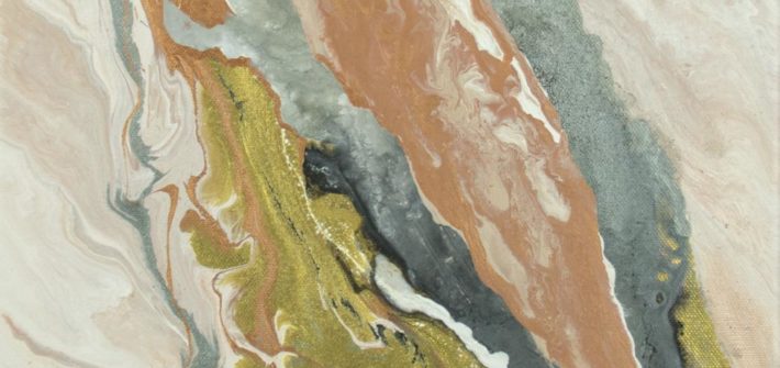 Peinture abstraite originale sur toile ; acrylique fluide avec effets dorés.
