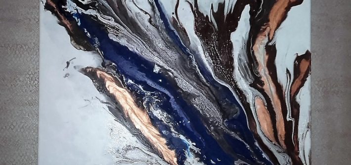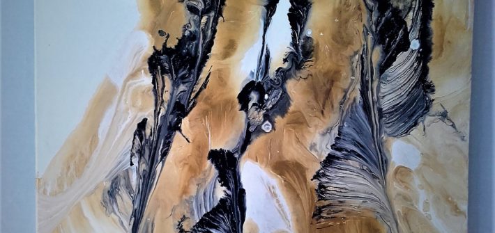 Technique fluide mixte avec effets dorés.