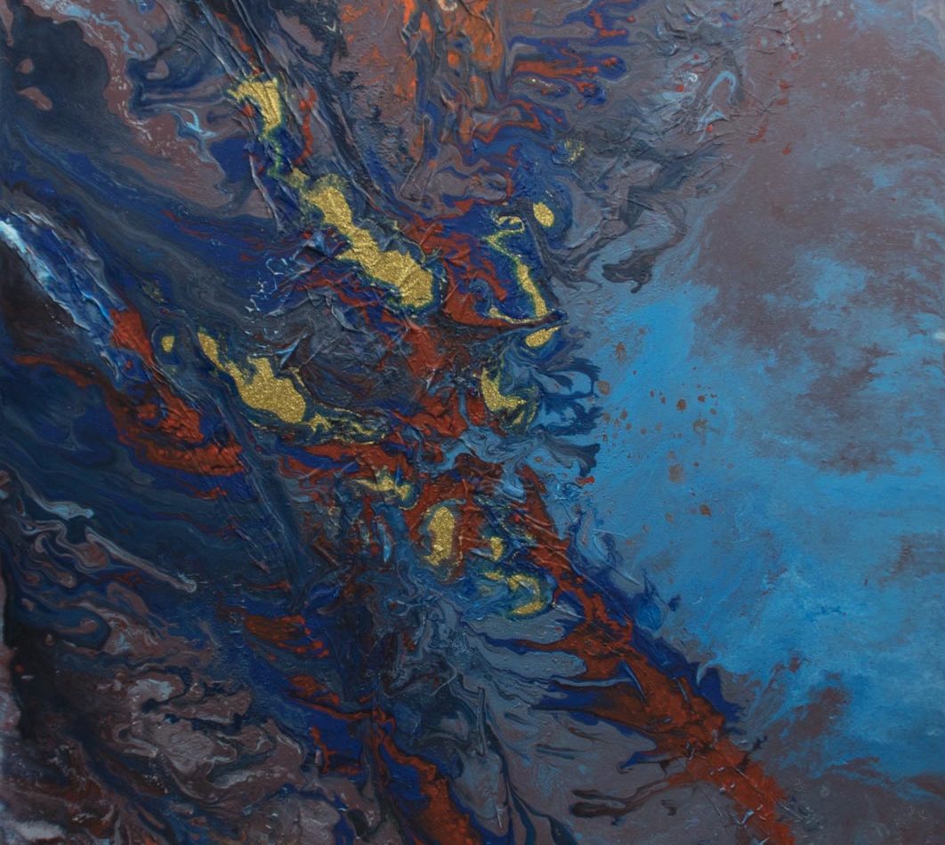 Peinture abstraite originale sur toile ; acrylique avec effets structurés et dorés.