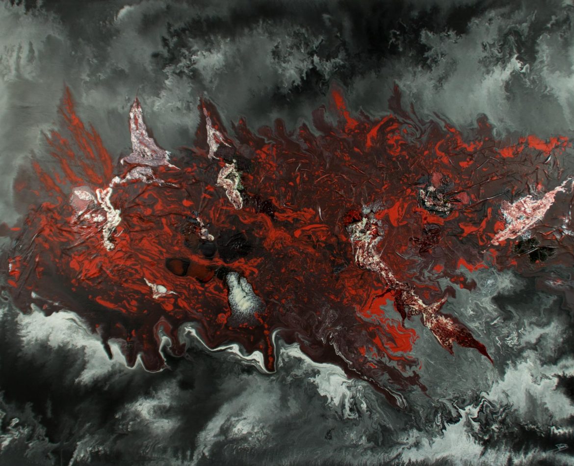 Peinture abstraite originale sur toile ;technique mixte ( acrylique fluide avec effets structurés et peinture céramique ).