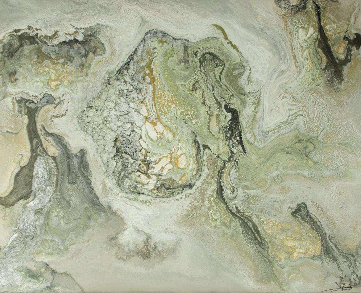 Peinture abstraite originale sur toile ; acrylique fluide avec effets métalliques.